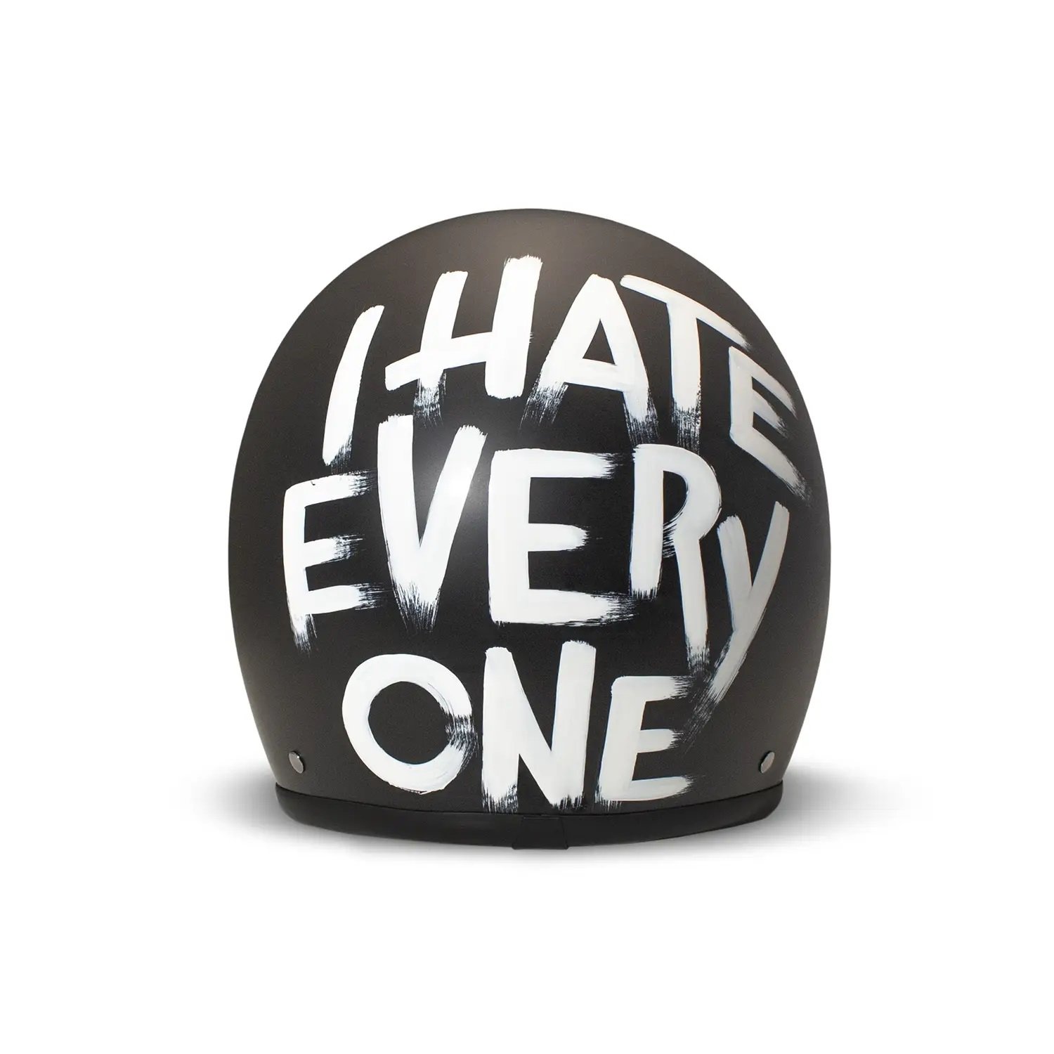 El casco jet I Hate Everyone DMD «Odio a todo el mundo» es un casco con mucho descaro pero a la vez elegante gracias a su color negro mate, un color imprescindible en los últimos años.