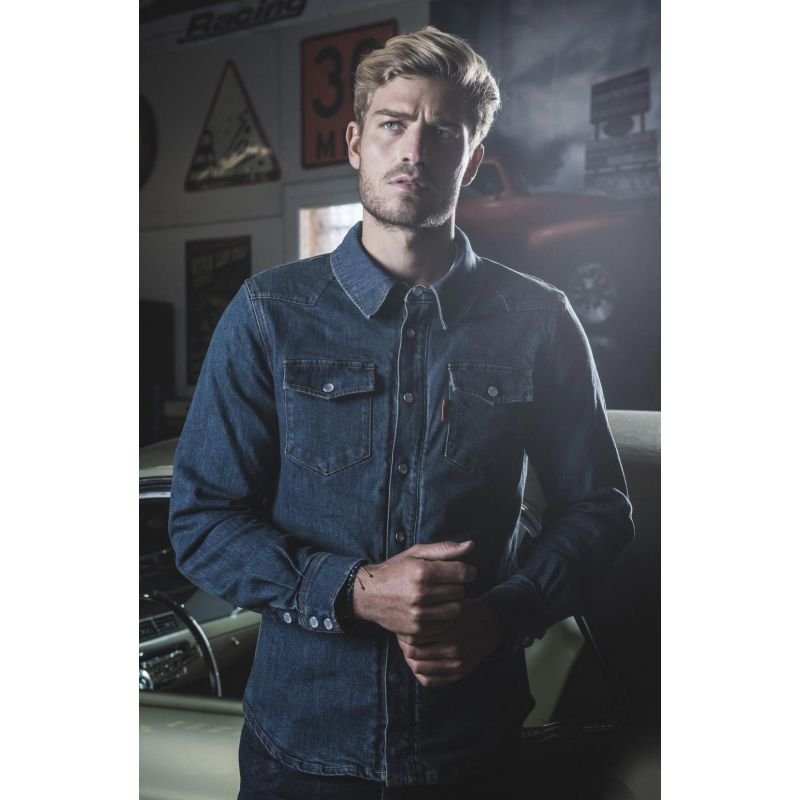 Ir guapo, cómodo y a la vez seguro es posible con la camisa vaquera de moto Terence de SEGURA. Una sobrecamisa textil para moto fabricada en Denim Stretch que aporta resistencia y su flexibilidad.