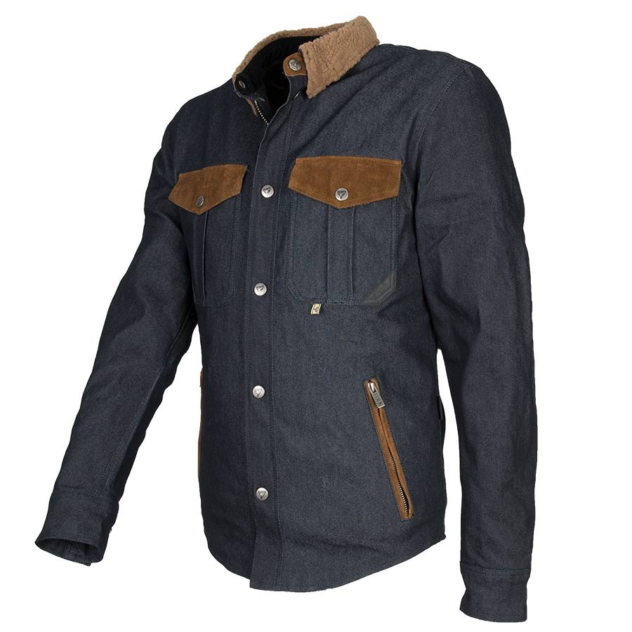 La Chaqueta vaquera moto Western de By City Western Azul proporciona un look casual perfecto para el uso diario en invierno gracias a su forro interno de tejido borrego. Incorpora refuerzos de aramida y protecciones desmontables Flexishock en codos y hombros con certificado CE de nivel 2. Podrás lucirla e ir calentito cuando no vaya en moto ya que sus protecciones son fácilmente extraíbles